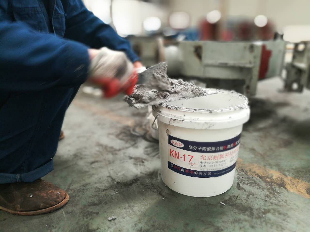 圖(2)Kn17脫硫塔防腐材料正在配制施工