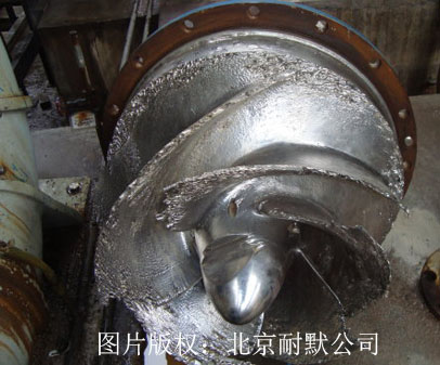 脫硫塔底部的漿液含有大量飛灰、 脫硫介質顆粒, 粒度一般為 0~ 400μm、 90%以上為 20~ 60μm, 濃度為 5%~ 28%( 質量比) ,這些固體顆粒( 特別是 Al2O3、 SiO2 顆粒) 具有很強的磨蝕性。在典型的石灰石( 石灰)石膏法脫硫工藝中, 一般塔底漿液的 pH 值為 5~ 6, 加入脫硫劑后 pH 值可達 6~ 8.5( 循環泵漿液的 pH 值與脫硫塔的運行條件和脫硫劑的加入點有關) ; Cl-可富集超過80000mg/L, 在低 pH 值的條件下, 將產生強烈的腐蝕性。此外,循環泵輸送的漿液中往往含有一定量的氣體。 實際上, 離心循環泵輸送的漿液為氣固液多相流, 固相對泵性能的影響是連續的、 均勻的, 而氣相對泵的影響遠比固相復雜且更難預測。它們都導脫硫泵會遭到腐蝕。KNM17脫硫泵修復膠,是一款高分子陶瓷聚合物,耐磨抗、沖擊,抗酸堿腐蝕,高硬度,與金屬基體結合能力好,用它為脫硫泵制備涂層,可以改善脫硫泵防腐環境,延長使用時間。